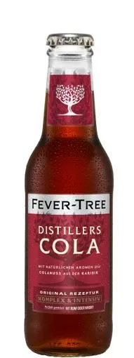 A Fever-Tree Distillers Cola tizenegy különböző természetes összetevő keverékével nyűgöz le, amelyek mindegyike gondosan válogatott. A Fever-Tree elvnek megfelelően a gyártás során csak a legjobb minőségű alapanyagokat használják fel, így az egyes összetevők a világ minden tájáról érkeznek: karibi kóladió, mexikói lime és olyan egzotikus fűszerek, mint az illatos madagaszkári vanília és a jamaicai szegfűbors. Különlegessége a Jamaicán vadon termő kóladió, amely természetes termesztési körülményei révén kiváló minőséget biztosít. Ezenkívül a Fever-Tree nem használ magas fruktóztartalmú kukoricaszirupot vagy más mesterséges édesítőszert vagy színezéket. A hagyományos kólatermékeknél 18%-kal kevesebb cukorból készült Distillers Cola kevésbé édes. Testes és összetett ízű, amelyet citrusos aromák és különféle fűszerek tesznek teljessé.