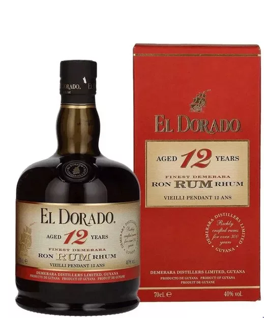 A Guyana rumjának története az 1640-es években kezdõdött a cukornád bevezetésével a korai európai telepesek körében. De csak addig, amíg a britek az 1650-es években el nem kezdték a lepárlódást az új területekbe, ezzel a Demerara Rum termelését megalapozták. Demerara megye, Guyana, a XVII. század óta elmerül a cukor- és a rumtermelés történetében. A Demerara Distillers ma a Demerara folyó keleti partján a Plantation Diamond gyárában Guyana-ban található. Itt összevonták az összes régi eredeti márkát amelyek révén a Demerara Rum ilyen jellegzetes. A világon nem létezik más rum-szeszgyár, amely több mint húsz különbözõ rumfajtát kínál.Az elegáns többszörös díjnyertes rum, az El Dorado 12 Years a Demerara Rum sima finom édességét jellemzi. A speciálisan kiválasztott cukornádmelaszok keveréke, a 12 éves Enmore és DiamondCoffey kombinációja és a Port Mourant dupla érlelésű kombinációja, ezt tökéletesen ötvözve az öreg bourbon tölgyfahordókban.Illata trópusi gyümölcs, fűszeres mézzel és sötét cukorral. Íze kerek, lágy, teljes testű, gyümölcsös és fűszeres aromákkal. A felület kellemes, elegáns és száraz.