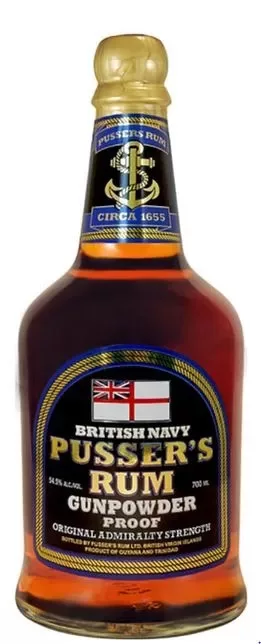 A Pussers Rum British Navy Gunpowder Proof egy különleges rum, amely a brit haditengerészet történelmi hagyományait idézi.Származás: Brit Virgin-szigetek.Stílus: "Gunpowder Proof" néven ismert, ami a magas alkoholtartalomra utal. Eredetileg a 18. században használták a rum alkoholtartalmának mérésére, amikor a rumot gunpowder (fekete por) meggyújtására használták, hogy ellenőrizzék az alkoholtartalmat.Ízjegyek: Erőteljes és gazdag ízvilág jellemzi, sötét gyümölcsökkel, mint a mazsola és a szilva, fűszerekkel, például fahéjjal és szegfűszeggel, valamint vaníliával. Az érlelés során tölgyes jegyek is előtérbe kerülnek.Felhasználás: Kiváló önálló fogyasztásra, de koktélokhoz is ideális, ahol az intenzív íz és magas alkoholtartalom különleges karaktert ad.