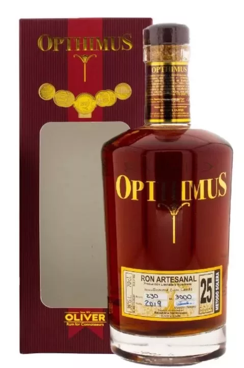 Opthimus Rum 25 Years egy igazán prémium rum, amely a Dominikai Köztársaságban készül, és egyedülállóan gazdag ízprofiljával és eleganciájával tűnik ki. Ez a rum a hosszú érlelési időnek köszönhetően különleges élményt nyújt, és a rumkészítés mesterségét tükrözi.Főbb jellemzők:Származás: Dominikai Köztársaság. Az Opthimus rumkészítése a dominikai rumkészítési hagyományokra épít, amelyek világszerte elismertek a prémium rumok előállításában.Érlelési folyamat: Az Opthimus 25 Years a Solera rendszerben érlelődik, amely egy komplex érlelési technika. A rum különböző korú tételeket kevernek, és az érlelés során a fiatalabb rumok a régebbi rumokkal keverednek, így biztosítva a folyamatos íz- és minőségkonzisztenciát. A 25 éves érlelési idő alatt a rum többféle tölgyfahordóban is érlelődik, ami hozzájárul a gazdag és összetett ízprofil kialakulásához.Ízprofil: Az ízprofil gazdag és rétegzett. Az Opthimus 25 Years-ben a karamell, vanília és érett gyümölcsök (például mazsola és szilva) dominálnak, finom fűszeres jegyekkel, mint a fahéj és a szegfűszeg. A hosszú érlelés során kialakuló tölgyes árnyalatok és a mélyebb ízjegyek hozzájárulnak a rum gazdag és elegáns karakteréhez.Aroma: Az aroma gazdag, intenzív és összetett, ahol a karamell, vanília, érett gyümölcsök és fűszeres jegyek dominálnak. Az illatban érezhetők a tölgyfahordók által hozzáadott finom, összetett aromák.Szín: Mély borostyán, mahagóni vagy akár sötét vöröses színű, amely az érlelési idő és a tölgyfahordók hatásának eredménye. A szín gazdag és intenzív, ami a rum prémium minőségét és hosszú érlelését tükrözi.