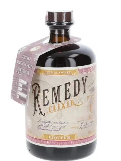 A Remedy Pineapple Rum története az Egyesült Államokban kezdődik az 1920-as években. Egy olyan korszakban, amelyet a jólét, a vad és túlzott bulik, de a tilalom is jellemez. 1920 és 1933 között az Egyesült Államokban országos tilalom volt érvényben az alkohol gyártására, szállítására és értékesítésére. De ellenállni a tiltott csábításának nem könnyű...Szeszes ital beszerzésére minden lehetőséget szívesen fogadtak. Többek között az illegálisan becsempészett alkoholt is gyógyszertárakban és drogériákban árulták orvosi ürügyekkel, valóságos feketepiacot teremtve ezzel a szeszes italok számára. Innen a Remedy Rum titkos bárokba és pubokba, valamint exkluzív fesztiválokra is eljutott, ahol elbűvölte a vendégeket.Ma, majdnem 100 évvel később, a rum iránti rajongás újra virágba borult, így a Remedy Rum reneszánszát éli.A Remedy Elixir Liqueur alapjául a Panamából származó melasz rum szolgál, amelyet tölgyfahordókban érleltek 7 évig. A finom likőr illatában a rum jellegzetes édességével, vanília és karamell jegyekkel inspirál, kakaó, narancs, dió és fűszeres, melengető szegfűszeg finom illatával. Ízben folytatódik ez a változatos aromajáték. Eleinte édes vanília és karamell jegyek dominálnak az ízben, diós tónusok és meglepő kókuszos árnyalatok a lecsengésében. Az ízélményt kellemes, de nem tolakodó élesség teszi teljessé.