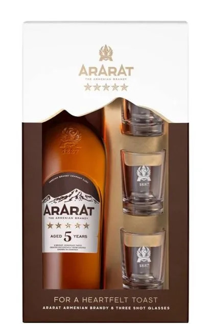 Az Ararat Brandy a legjobb örmény brandy, kézzel készített ital, amelyet a Yerevan Brandy Társaság több száz mesterének munkájából hoztak létre. A Brandy létrehozása a szőlőültetvények óvatos művelésével kezdődik, az Ararat-völgyben, melyet évente 300 napig bőséges örmény napsütéssel árasztanak el. Az Ararat-völgyi éghajlat, a helyi talajok és a szőlőfajták adják az Ararat gazdag ízét. Az ötéves Ararat Brandy a legnépszerűbb a tartományban. Érett és lédús szilva, az édes örmény őszibarack jegyei és a finom ízű feketeribizli jellemzi.